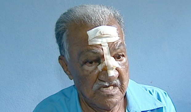 O aposentado Atalino Santana, com vários curativos no rosto, disse que